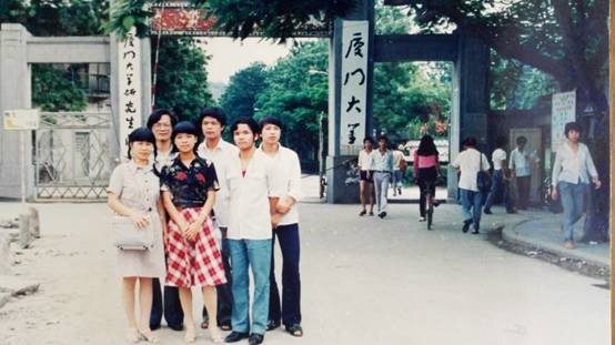 初遇厦大 1984年,带着年轻人的懵懂和热血,也怀着读书报国的青年梦想,蓝达居考入了厦门大学历史系考古学专业。“当时厦大的考古学在全国比较出名,加之学校的宣传介绍,由华侨陈嘉庚先生创办。这些都对我产生了很大的吸引力。” 8月30日出发,从桂林乘直快列车到鹰潭中转,9月1日下午五六点抵达厦门,前后3天的辗转,这便是蓝老师的来厦求学之路。如今回忆起开学报到的这一天,他仍历历在目:“我还没下火车,就已经听到有人拿着大喇叭喊:‘厦大的新生请跟我来!’当时没有想到会有老师来接,十分意外。”团委老师和同乡学长的热情接待让初次到达这个陌生城市的广西青年感到宾至如归。而厦大迎新接站的这一传统也在代代传承中保留至今。