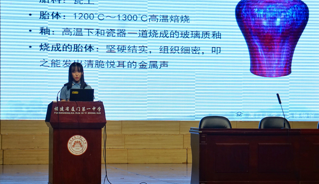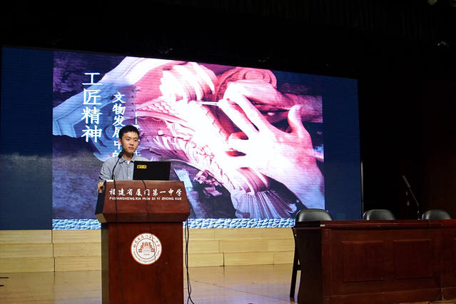 10月26日下午,由厦门大学人类博物馆携手厦门市第一中学科普讲座活动在厦门一中大礼堂举行,厦大人类博物馆老师带领人文学院三名本科生走进一中开讲,近一千名师生参与听讲。此次科普活动,是厦门大学人类博物馆作为省市级科普教育基地,响应“2017年全国科普日重点活动”首次与厦门一中合作交流,以“工匠精神——文物发展中的匠心匠魂”为主题,向刚进入中学的初一年段学生介绍厦门大学人类博物馆馆藏文物,讲述它们背后的工匠精神。不同于以往的科普活动,这次人类博物馆走出厦大,前往中学与学生们进行面对面的交流。