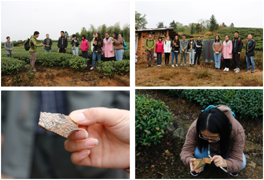 25日早晨,葛威和黄运明老师带领同学们前往葫芦山遗址实地考察,同学们聆听老师对葫芦山遗址基本情况的介绍,实地观摩了历年来发掘的遗迹和探方,并对尚未发掘的地点进行踏查,采集地表遗物。尽管是第一次,但是同学们仍然收获颇丰,采集到陶片、石锛等遗物。