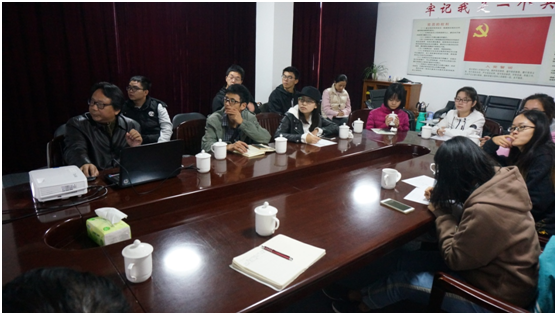 在抵达动车武夷山东站后,同学们马不停蹄地赶往兴田镇西郊村。这里是厦门大学武夷山市葫芦山遗址考古实习基地。2014、2015、2016年人文学院考古学专业学生已在此进行过三次田野考古实习,且有较丰富的发掘成果。如何展示这些成果,正是同学们所需要思考的问题。在简单的参观实习点后,葛威老师、黄运明老师与同学们饮茶、座谈,使同学们对策展,乃至对考古学本身都有了更加深刻的了解。黄运明老师指出,策展不能只从考古学的角度去考虑,而应该跨学科思考,运用不同的思维方式,才能够使展览贴近观众,从而达到传播知识的作用。