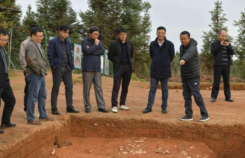 揭牌仪式结束后,王新天老师带领各位嘉宾了解了基地及当前发掘区的概况,并介绍了目前的发掘进展和部分成果。