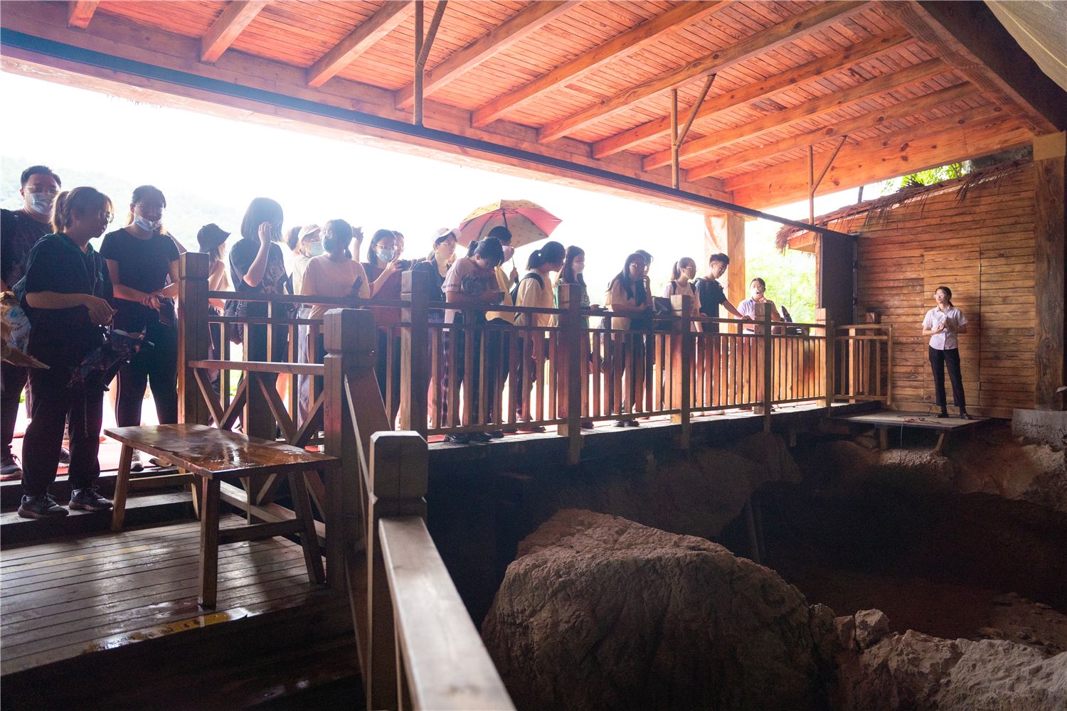 跟随着讲解员的脚步,同学们细细观看,感受着这个有着20万年历史的旧石器时代遗址的魅力。从考古发掘的点滴细节,到出土的各种动物化石,再到研究复原的古代环境、古人类对打制石器工具的使用等等,福建地区20万年的人类发展长河在同学们眼前展开。在了解到万寿岩古人所使用的锐棱砸击技术和台湾省发现的石器生产技术有着高度一致性后,同学们对万寿岩这个“两岸文明的共同家园”也有了深刻的认识。
