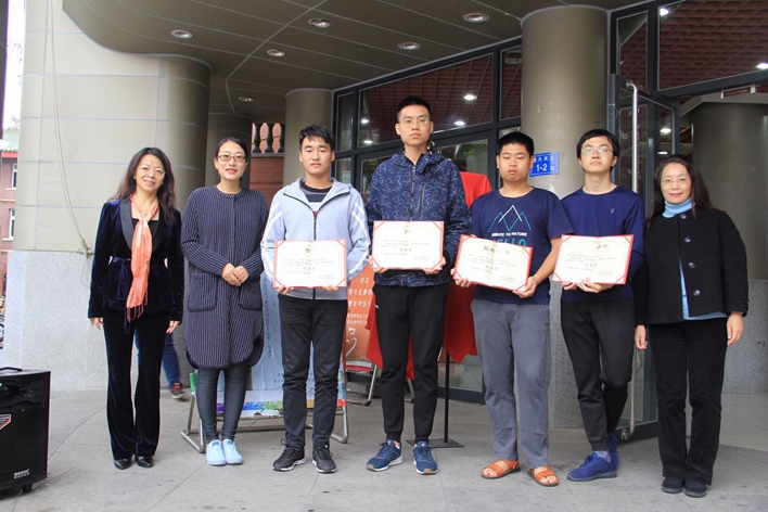 接下来,葛威老师宣读了获奖名单。之后,伴随着欢快的音乐,李晓红老师、黄宇霞老师和李莉老师共同为获奖团队颁发了获状证书,并与他们合影留念。